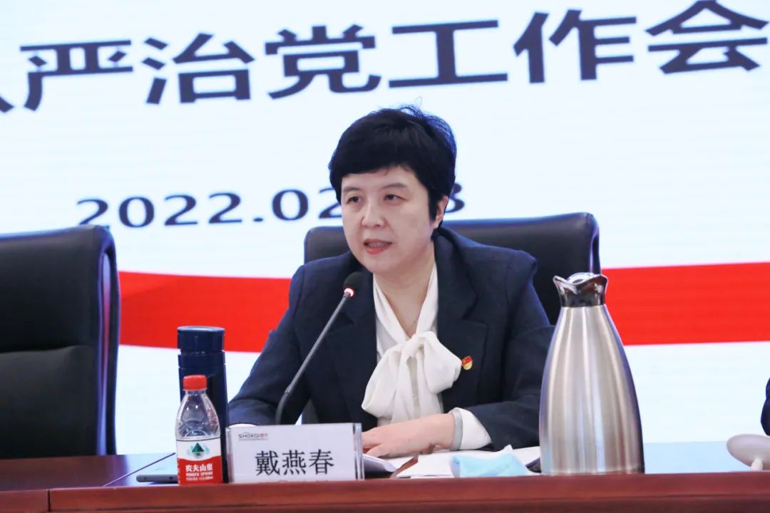 ▲党委副书记、工会主席戴燕春主持会议